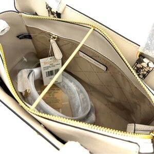 Michael Kors Large Reed Leather Belted Satchel Crossbody Bag Cream Snakeskin