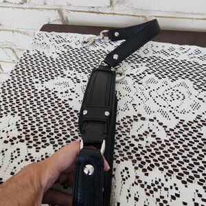 C498 The COACH Ashley Black Leather Satchel Tote Purse is a stylish and versatile handbag suitable for various occasions including parties, casual outings, and business meetings. Made of high-quality leather with a sleek matte finish, this large-sized shoulder bag features a rectangular shape with a zip closure and black double handles. The purse also includes silver hardware accents, black leather emblem, silver sateen liner, two slip pockets, and a zip. The black exterior with animal print pattern and luxury satin lining make it a fashionable and chic accessory for any woman's wardrobe. The measurements are 14"x11.5" x3.5".