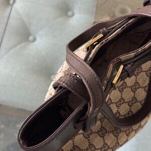 Gucci GG CANVAS Vintage Buckle Tote Brown Small