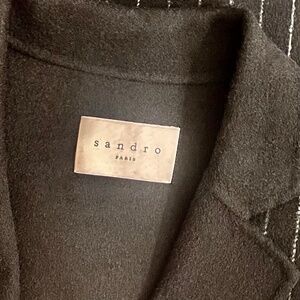 SANDRO Paris Felted Wool Long Coat Black Gray Pinstripe Stripe Size 1 / US 4