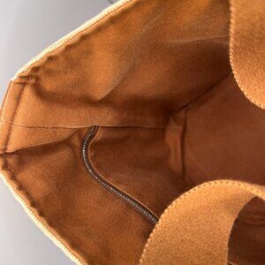 The medium-sized bag is made of toile fabric with silver hardware, showcasing the iconic Hermes logo pattern. It is designed with inner pockets and a cotton lining in a matching brown color. This pre-owned bag exudes luxury and style, making it the perfect accessory for any occasion—great Price for this gorgeous bag.
