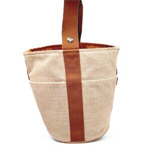 Authentic HERMES Saxo MM Handbag is a vintage bucket bag in brown and beige, featuring a classic button closure and brown top handle.
