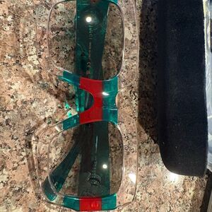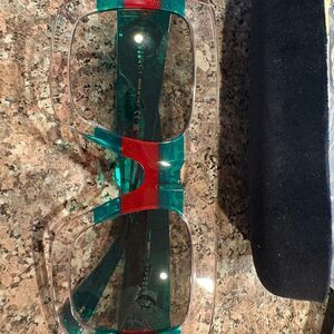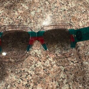 Brand new with box GUCCI ICONIC 3 COLOR SQUARE OVERSIZED SUNGLASSES GOLD INTERLOCKING GG. Rare Chic Gucci sunglasses with a striking teal and red design. Features a bold square frame.