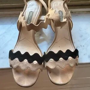 Chic Prada sandals with wave design. Black and cream colors. Stylish and comfortable. In good condition.