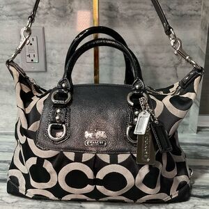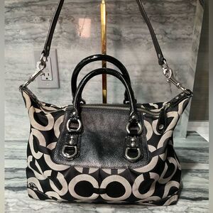 This Coach satchel is a pre-owned in EUC, features the iconic Optic Signature C pattern, combining classic style with practicality. Ideal for both casual and professional settings.