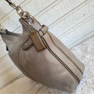 COACH Colette Grey Tan Op Art Leather Hobo Shoulder Bag 16442