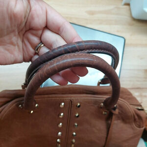 Michael Kors Gold Studded Brown leather handbag Purse Tote Large