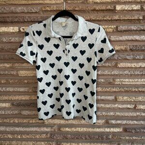Burberry Brit Gray Heart Print Stretch Cotton Pique Polo Shirt Size Small