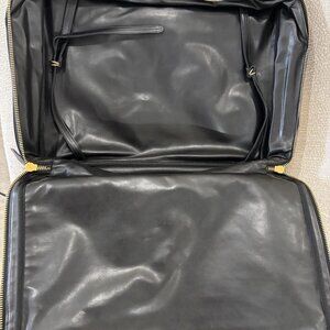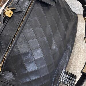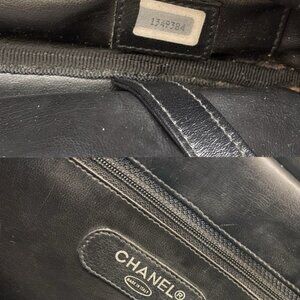 Authentic Chanel Black leather wild stitch 2 compartment suitcase travel bag