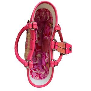 Coach Butterfly Patch Wicker/Straw and Leather Trim Double Handle Tote Bag.
