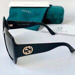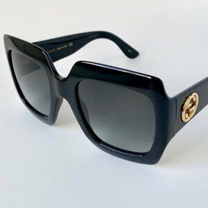 NWT Gucci Square GG0053SN 001 Black/Gold Sunglasses