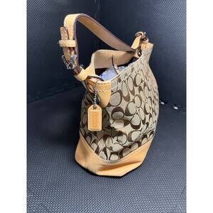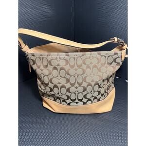 Coach 2156 Tan Signature Fabric Leather Bag Hobo Bucket Style Womens Purse