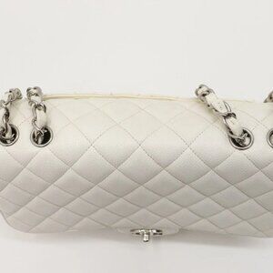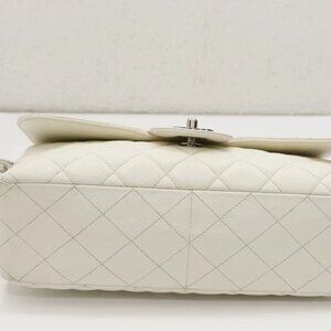Chanel White Vintage Classic Single Flap Bag Quilted Caviar Jumbo
