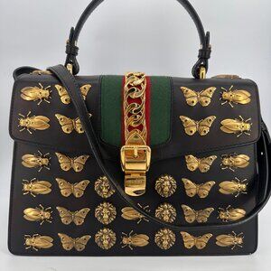 Gucci Calfskin Animal Studs Medium Sylvie Top Handle Bag