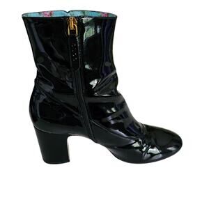 Gucci Lois Bee Block Heel Ankle Short Boot Size 38 US 8 Patent Black Leather