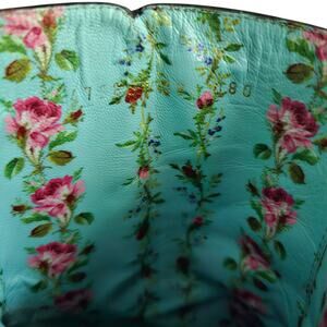 The standout detail is the gold-tone metal bee with pearl accent on the outer shaft—an iconic Gucci motif symbolizing luxury, strength, and heritage. A practical side zipper closure ensures ease of wear, while the vibrant floral interior lining adds a touch of Gucci’s signature whimsy.