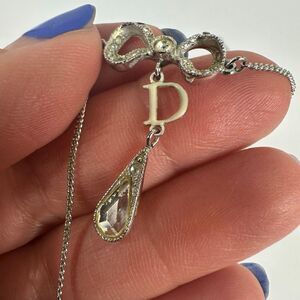 Christian Dior Letter “D” Y-Drop Silver Tone Rhinestone Pendant Necklace