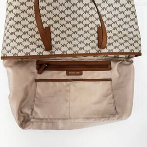 Michael Kors Signature Emry Large Tote Bag Zip Closure Shoulder Handbag Brown