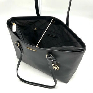 Michael Kors Bag Large Sheila Mf Tote Bag & Large Double Zip Wallet Black/Gold
