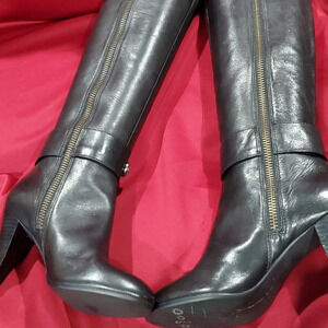 excellent condition minor wear all shown in photos. black leather tall heeled boots size 5.5 B by coach