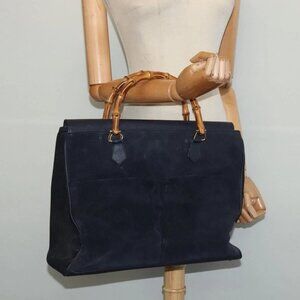 GUCCI Bamboo Hand Bag Suede Navy Gold 002 2855 0322 0 Auth ep10056