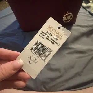 Chic Michael Kors satchel in deep red. Features gold-tone accents and logo charm. Perfect for stylish outings.