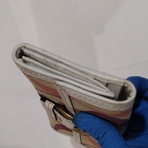 Vintage Coach Signature C Logo Buckle Design Long Wallet, is a perfect blend of style and functionality. This wallet features a vibrant and colorful design, adorned with the iconic Coach C logo and a chic buckle closure. The snap closure ensures your belongings are secure while providing easy access. Ideal for the fashion-savvy individual, this wallet keeps your essentials organized and makes a statement. Its spacious interior includes compartments for cards, bills, and coins, making it a practical addition to your accessory collection.