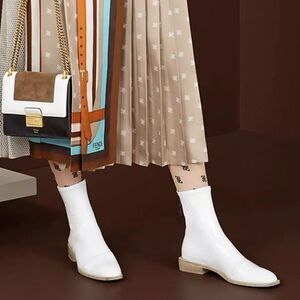 New Fendi FFrame White Patent Neoprene Stretch Logo Ankle Chelsea Boot 38/ US 8