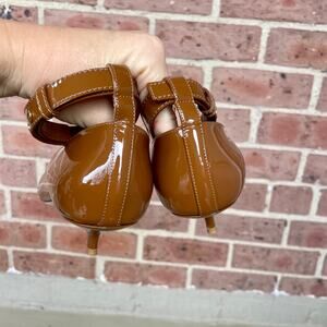 Burberry Brown Patent Leather Dill Kitten Heel Ankle Cuff Pumps Heels 38 Satin