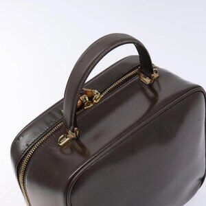 GUCCI Bamboo Vanity Hand Bag Patent leather Brown Gold Auth ep10340