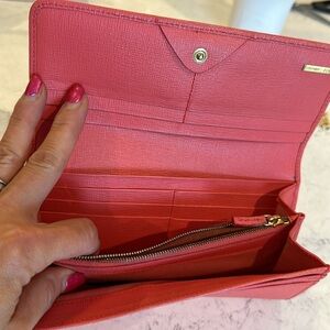 Authentic Fendi salmon colored leather wallet on unbranded gold tone chain