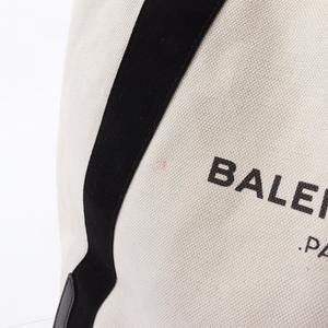 Used Balenciaga Navy Cabas Medium Tote Bag, Canvas and Leather, Women's, White/Black, 339936 (SKU: GZl1brzt)