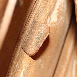 Overall: Surface: Shape Loss, Rubbing Stain Leather: Rubbing, Stain Scratches Handle: Rubbing Scratches Metal Fittings: Scratches