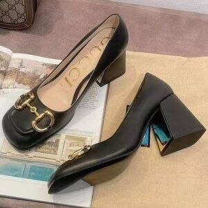 Elegant and stylish, these Gucci black leather shoes are perfect for any occasion. Featuring a classic design with gold accents, they offer both comfort and sophistication.