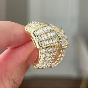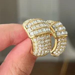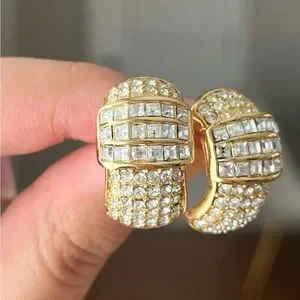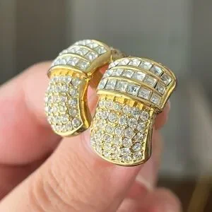 Vintage Christian Dior Rectangular Rhinestone Pavé Hoop 14k Gold Post Earrings