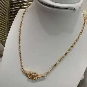 This elegant gold knot necklace adds a touch of sophistication to any outfit. Perfect for any occasion.
