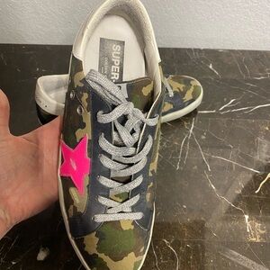 Golden Goose Superstars in Camo Ripstop Hot Pink Star