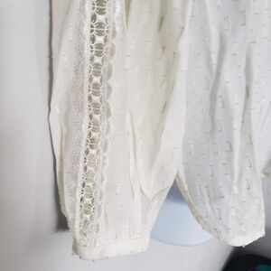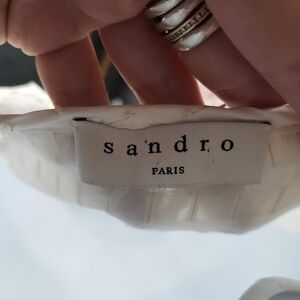 Sandro Women's 2 Ivory Long Sleeve Button Up Blouse Metallic Gold Silk Blend Top