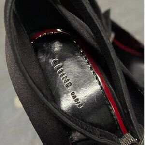 CELINE Archival Black Satin Wooden Wedge Heel Ankle Strap Shoes PHOEBE PHILO ERA