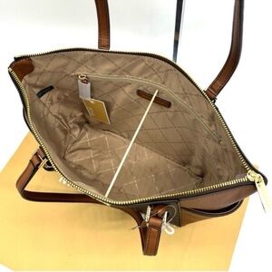 Michael Kors Large Charlotte Tote Bag & Continental Wallet Luggage Brown