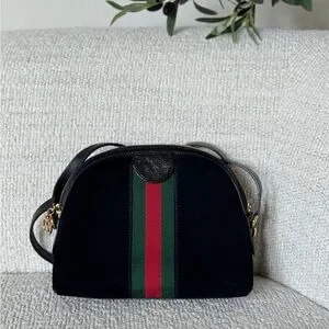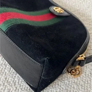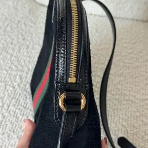 Black Gucci Crossbody Bag with Green and Red Stripe
