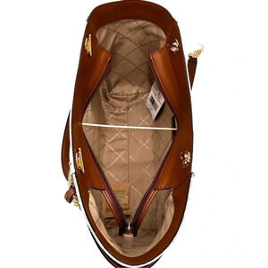 • Interior: 1 zippered pocket & 2 slip pockets Michael Kors signature lining.
