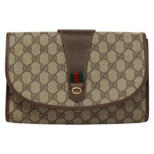 GUCCI GG Supreme Web Sherry Line Clutch Bag PVC Beige