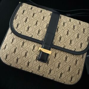 Brand new Elegant Saint Laurent crossbody bag in beige and black. Features iconic logo pattern canvas . Perfect for any occasion
