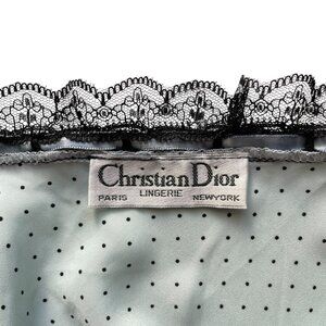 Keywords: Christian Dior lingerie, vintage Dior slip, Dior polka dot slip dress, mint green slip, Dior lace trim dress, collectible Dior lingerie, 90s lingerie slip, boudoir lingerie, vintage designer nightwear, Dior Paris New York