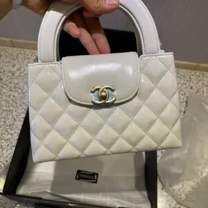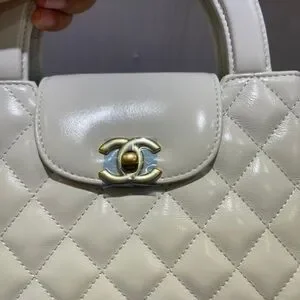 CHANEL Kelly white Leather Handbag with Gold Accents