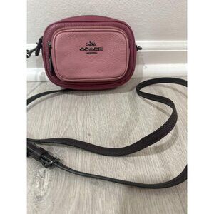 Coach Crossbody Bag Womens Pink Double Zip Camera Pebbled Leather Two Tone Mini
