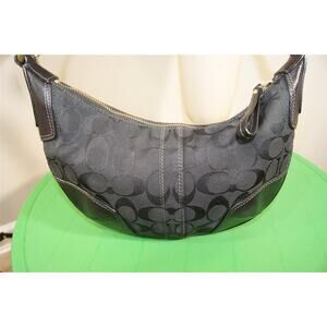 COACH SIGNATURE 11371 JACQUARD CC BLACK HOBO BAG PURSE (150