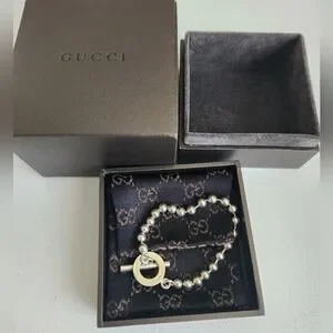 GUCCI Sterling Silver Ball Chain Toggle Bracelet full set