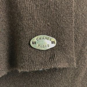Chanel Shawl Scarf Chocolate Brown Knit Split Shawl Vintage 80s Rare with COA
